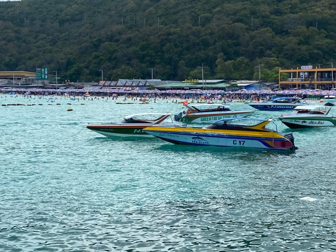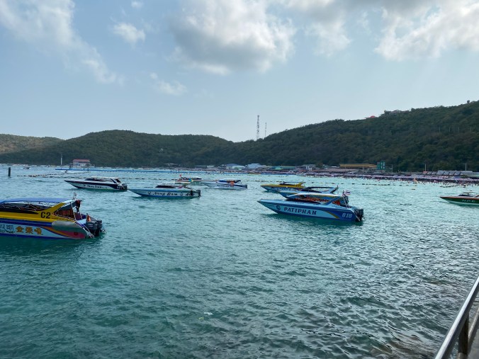 So many things to see and do but today we just decided to chill. Well, chill in our way. Got up early and took a taxi into Pattaya and then hopped on the public ferry for 1 dollar (30 Baht) and took 45 minute trip to Koh Larn An island just off the coast.